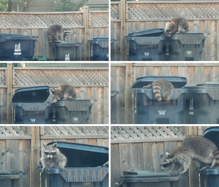 One particularly persistent urban raccoon even learned to open doors leading into MacDonald’s garage, where she keeps her garbage bins. It stood up on an overturned flowerpot, and kept pulling and pushing on the round knob of the door handle with its five-digit paws until it turned. “Normally, they can’t do that, they can’t grasp and turn things very easily,” MacDonald says. “Raccoons in the city are extraordinary, not only in their ability to approach things, but they have no fear, and they stick with it, they will spend hours trying to get food out of something.”