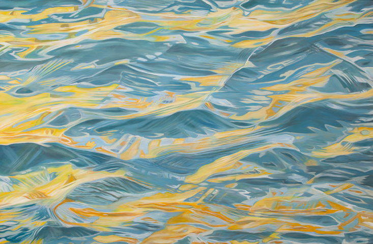 FF: I understand that variability. I usually paint water. Watching water move is a time-honored way of moving into the present moment. My goal is to feel the water move in the painting, but water has rules, and I have to pay attention to motion in establishing the composition. Water is defined by time: the length of time it takes for a wave to pass a set point. At around a second, you have a ripple; over 10 seconds, a swell, and in between a wave. Once I get the composition down, I can begin to pay attention to the rhythm of the painting. I put on music (for example, your Satyagraha) and enter into a dance with the painting, changing the composition to exaggerate the rhythm. Time disappears. I become a verb, seeing, painting. That time cannot be measured. With this kind of focused attention, time has no boundaries. That’s the kind of time you find in love, in creativity, in the life of the spirit, the kind of time I live for.