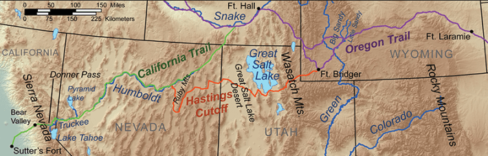 The Donner and Reed families began their journey in Springfield, Illinois, on April 15, 1846, and joined a large train of fellow wagon travelers. Once they made it to Wyoming in June, they decided to embark on the Hastings Cutoff: It was touted by California promoter Lansford Hastings, who claimed it could shorten their journey by up to some 400 miles. Hastings had never actually traveled it, but he hoped to attract people to his business schemes along the way. But explorer James Clyman, who knew James Reed of the Donner Party from the Black Hawk War in 1832, warned him against it.