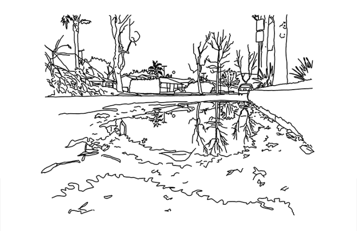 A few more miles and the atmosphere turns golden, rays diffuse and refracted, a sepia glow. By the time we are moving past downtown L.A., it does not matter that the windows are up. A headache is starting. I feel the change of the air in my lungs. The diminishing. The tightening. The hurt. The light outside is stunning, though, gorgeous, the way an ice storm is a kind of guilty pleasure—so beautiful and so terrible, so patently disaster or the precipice before.