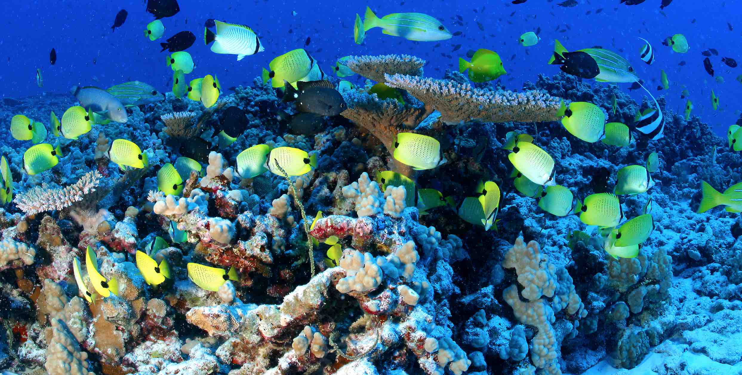 Lead image: Reef fish including ornate butterflyfish, pennant butterflyfish, and bluestripe snapper swirl around corals at French Frigate Shoals in Papahānaumokuākea Marine National Monument. Credit: Mark Sullivan/NOAA Fisheries Hawaiian Monk Seal Research Program