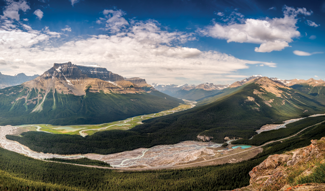 Lead image: The North Saskatchewan River (foreground), at its confluence with the Alexandra River near the rivers’ headwaters in the Canadian Rockies, is part of the Saskatchewan River system, which together with the Nelson River watershed is the last remnant of the once-mighty Paleo-Bell River system. Credit: Yvesgagnon1974/istockphoto.com.