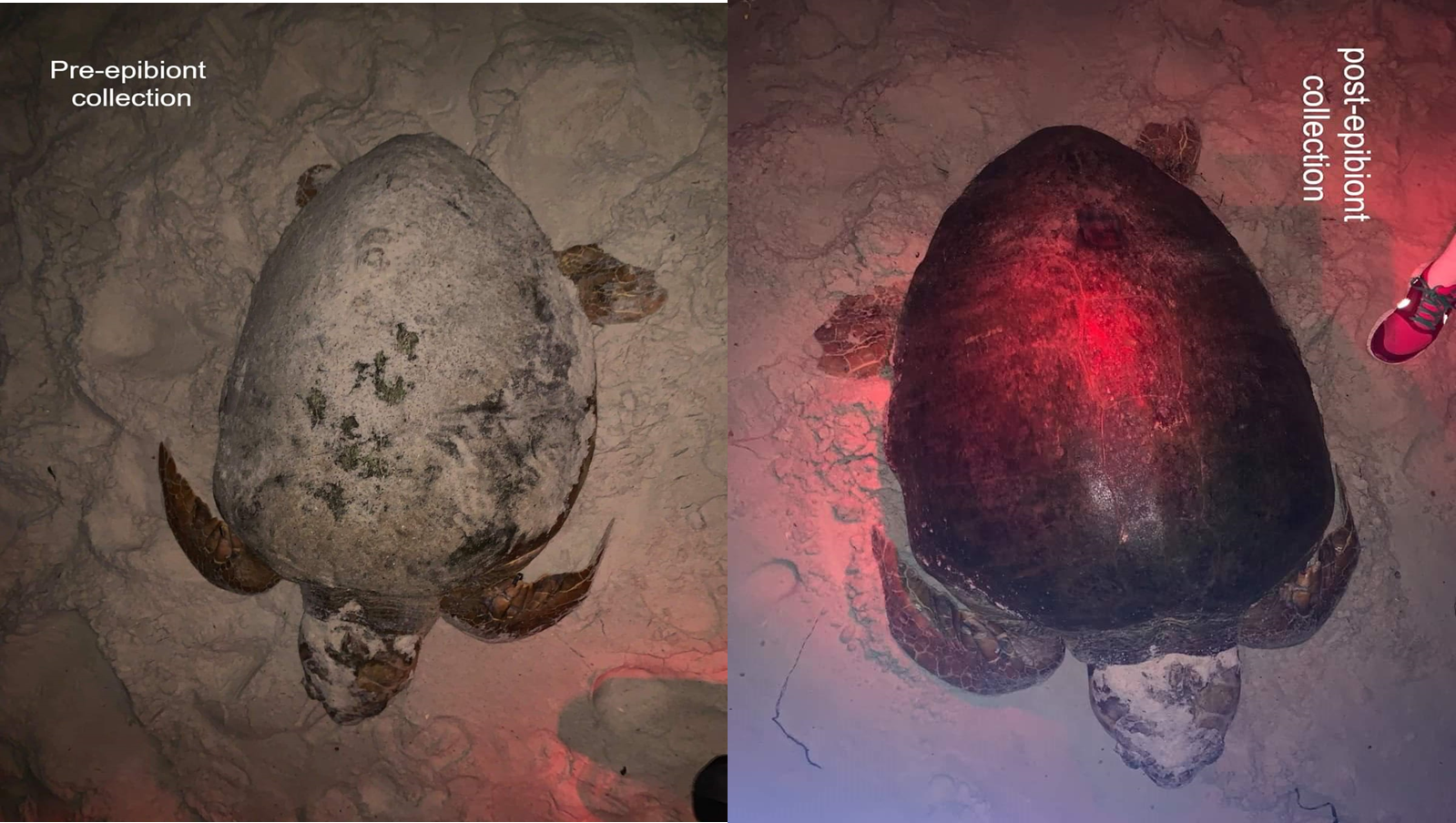 As they scrubbed, the researchers "could see there was life" on the turtles, says dos Santos, a zoology professor at the Federal University of Pernambuco in Brazil. In the glow of their red headlamps, they watched forms wriggling and crawling. Some tried to jump for it and had to be corralled.