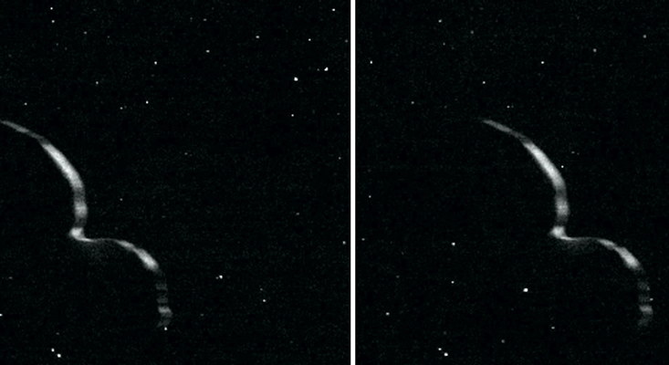 Before New Horizons arrived on Dec. 31, 2018, we knew essentially nothing about this object; it had been observed only as a dot in the dark by the Hubble Space Telescope. In the initial spacecraft images, Arrokoth seemed to resemble a 22-mile-tall snowman, with a smaller ball jammed onto a second, larger one. Then a day later, the spacecraft looked back on its target as it was speeding away, and the picture got more complicated.