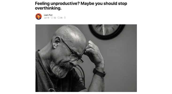 2. Porr, L. Feeling unproductive? Maybe you should stop overthinking. https://adolos.substack.com/ (2020).