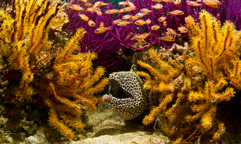 A coral’s microbiome includes an enormous diversity of bacteria, archaea, fungi, and even viruses. Exactly how microbiomes support coral health isn’t yet well understood, but what we do know is that a healthy microbiome can help corals survive times of stress. When the microbiome is disrupted, corals become more vulnerable to disease.