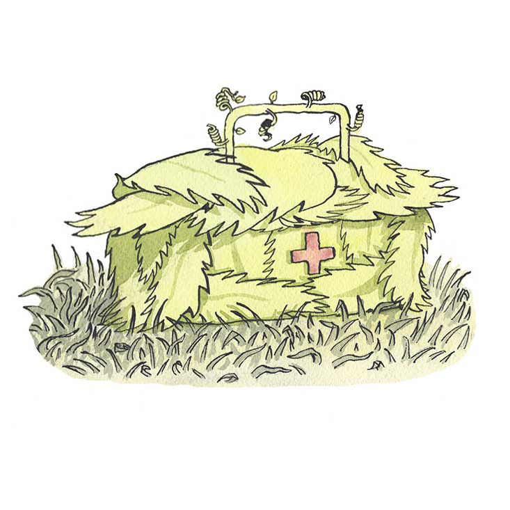 During a hard-fought battle, a plant must tend to its injuries. A range of compounds known as green leaf volatiles act as antiseptics, protecting damaged tissue against bacterial or fungal infection. (These volatiles, which make up the fragrance of freshly cut grass, send another warning to neighboring plants, reminding them that danger is at hand.)