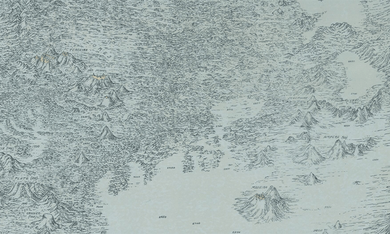 That map, shown here, was created in the style of a so-called physiographic diagram, which typically depicts geological features from above and to the side, as though viewed from a small airplane flying overhead. Though physiographic diagrams can instantly convey an area’s three-dimensional character, they are not generally useful for navigation. Due to gaps in the data, the map that Tharp and Heezen created was also partially speculative. Tharp had to rely on her training as a geologist to fill in the blanks, making educated guesses about some of the thrilling contours of the mid Atlantic ridge, towering nearly 10,000 feet above the surrounding seafloor; the Azores Plateau, stretching some 2.2 million square miles; and a previously mysterious chain of seamounts south of the Azores archipelago.