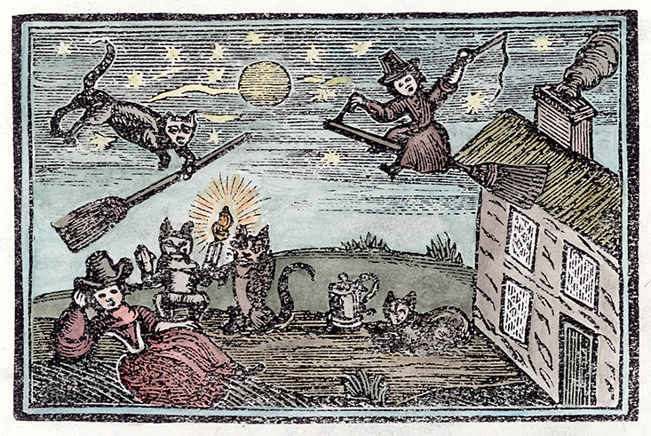 Lead image: The cat as the witch’s familiar in the 17th century, woodcut. Credit: Mary Evans Picture Library