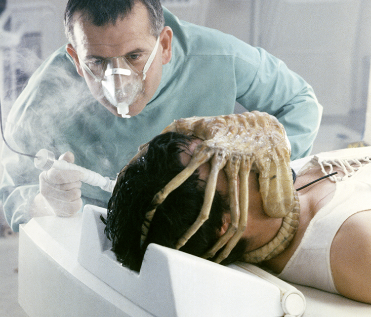 I was 13 years old when the movie Alien was released. It scared me into a month-long spell of anxiety. The hair on the back of my neck was perpetually up and I had the jittery demeanor of a combat veteran. While the full-grown xenomorph alien was chilling, the larval stage face-hugger was terrifying. Not only did it penetrate the human host’s throat, planting the chest-burster in the gut, but it was intrinsically grotesque, an odious, zoological mash-up of scurrying spider and slithering snake.