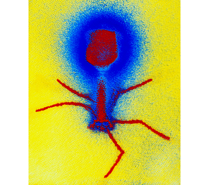 My face must have crumpled when Chan said he planned to infect a fragile 80-year-old with an experimental virus. He reassured me: “Phages infect only bacteria.” In fact, phages often target just a single bacterial species, or only a few strains of a single species. A phage is an intricately shaped key that fits but a single keyhole, a receptor on the bacteria’s cell wall. Once a phage unlocks its target, it slips its genome inside and turns the bacterium into a furious phage-copying machine. Eventually, the bacterium bursts, releasing hundreds of phage clones. Only a bacterial carcass is left behind. (Some phages take a quieter route, inserting their genetic code into a bacterium’s DNA so that each time the bacterium reproduces, the phage is copied too.)
