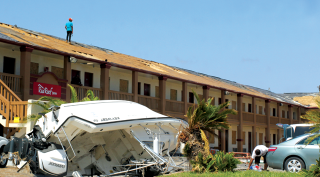 In Port Aransas, there were many destroyed resort RV parks and multistory hotels with missing roofs, damaged walls and broken windows. And endless amounts of debris were scattered about from homes with missing roofs and walls. Storm surge damage was evident in the marinas, where many boats were either partially sunk or completely beached.