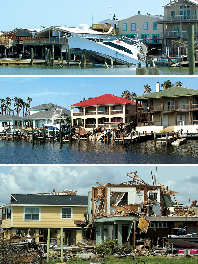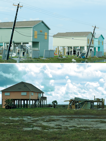 On Aug. 25, 2017, Hurricane Harvey, a massive Category 4 storm with maximum sustained wind speeds of 215 kilometers per hour, made landfall on the Texas Coast between the barrier island towns of Port Aransas and Port O’Connor. For the next five days, Harvey pummeled the coast and areas inland, producing torrential rainfall—more than a meter in some places, and about 70 cubic kilometers overall—which caused catastrophic flooding in the Greater Houston area. The flooding in and around Houston, 250 kilometers north of where Harvey made landfall, made news headlines for weeks. What was less widely reported, however, was the damage from storm surge and winds in Gulf Coast towns.