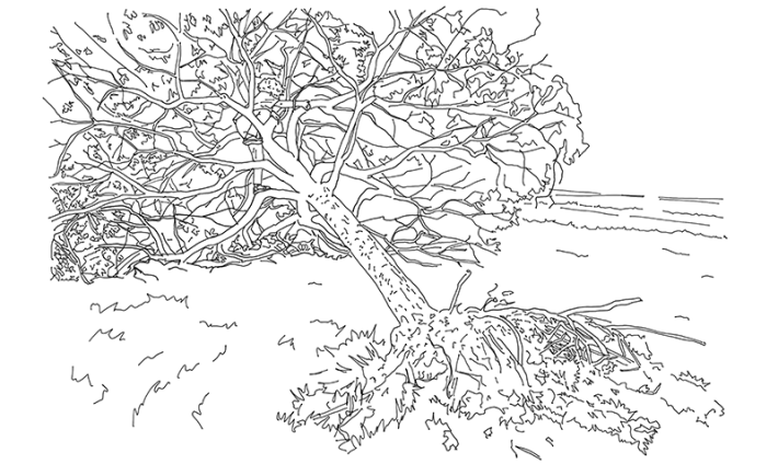 It’s late. I should be telling my nieces a bedtime story. But instead I accept their invitation and step outside into the windstorm that has had us wondering all day what the High Wind Warning really means. Their parents and I can’t remember having seen one before, don’t exactly know what to do. It’s January in Burbank, California. Earlier in the day I was headphones-on, sensitive to so much as a stomach gurgle, recording an audiobook when my engineer got a text from a studio a few miles away warning us to “save often,” that they had already lost power and with it all the work that day, the record evaporated and the words like they had never been spoken. Nothing happened to us. Nothing except all the tree branches I saw in the street when I walked over that morning, one impaled through the windshield of a parked car, perfectly vertical, like it had sprouted from the dash.