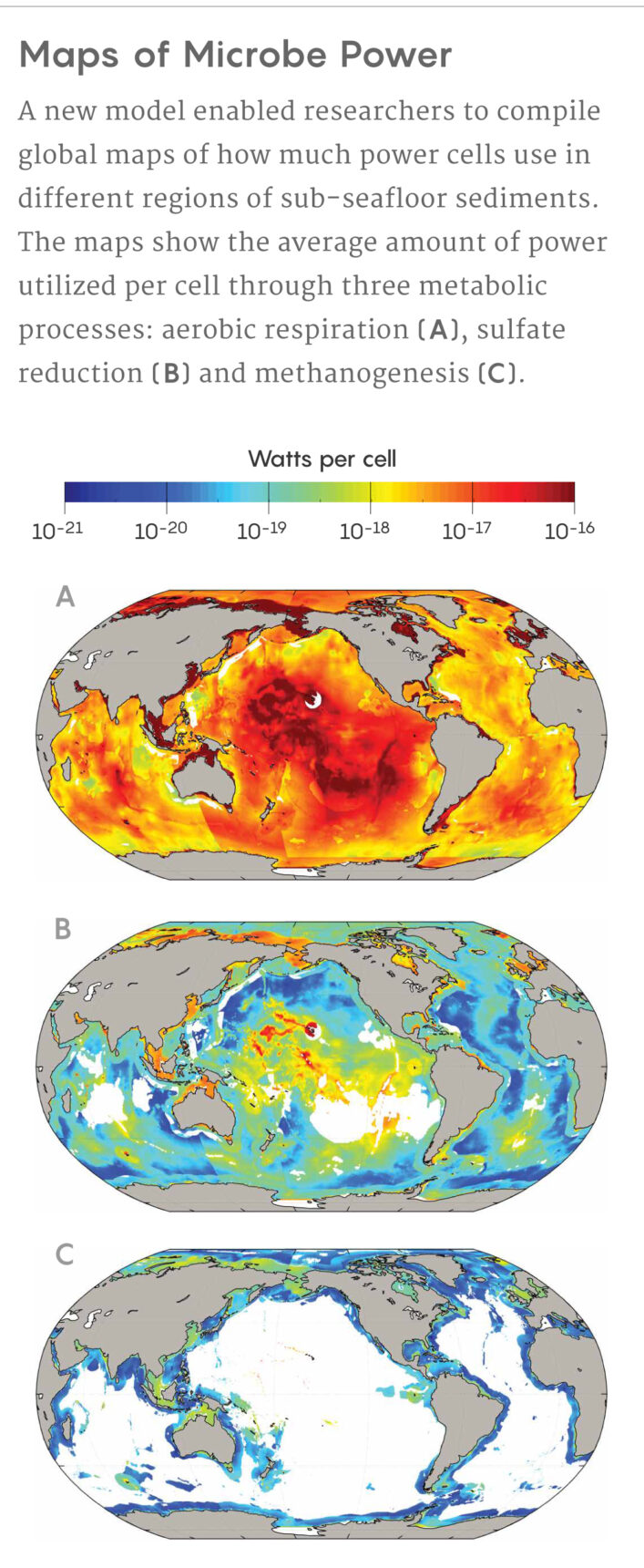 From those values, the researchers calculated the power consumption of cells in each region—the rate at which the cells obtain and use energy, rather than just the amount of energy itself. “That’s important, because it’s a more accurate way to talk about the energetics of life,” said Karen Lloyd, a microbiologist at the University of Tennessee, Knoxville who was not involved in the study. “Time really matters for life.”